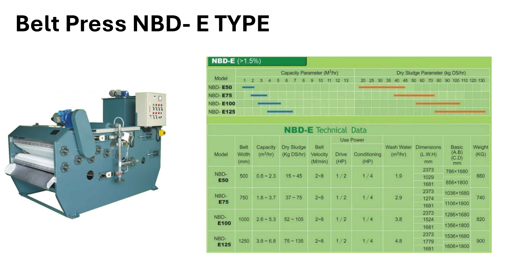 - Medium pressure filtration, which conditions the sludge for high pressure filtration quality